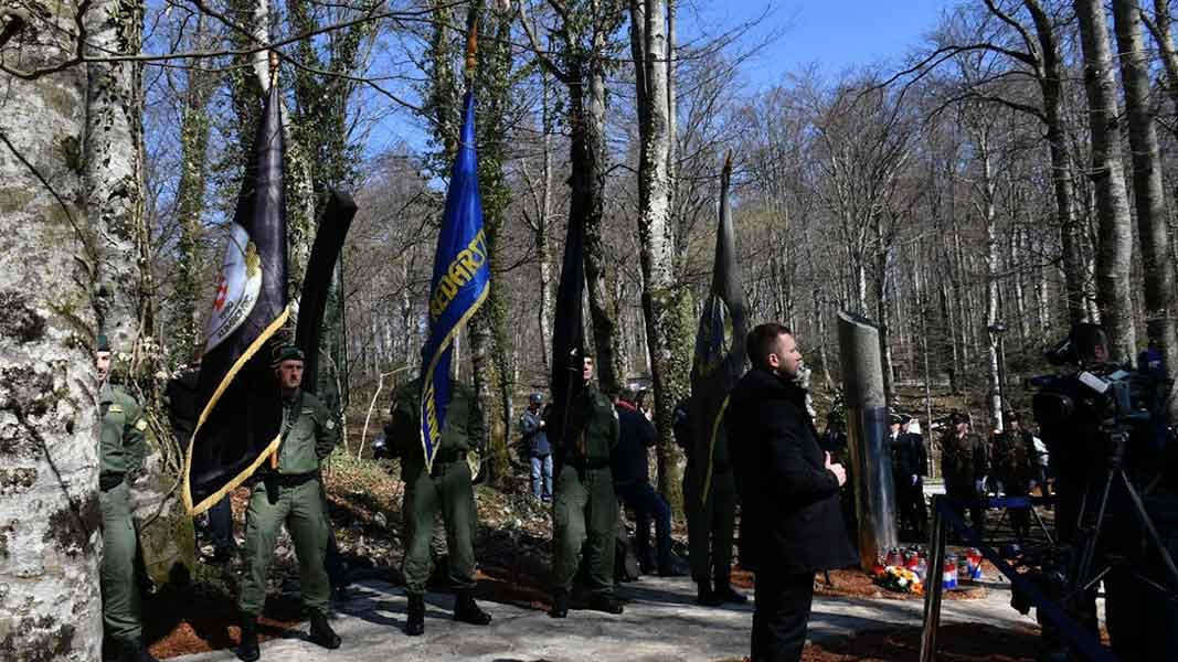 Svečanost odavanja počasti poginulom redarstveniku započela je klapa “Sveti Mihovil” izvođenjem himne Republike Hrvatske. Ispred spomen obilježja vijence su položili obitelj poginulog redarstvenika Josipa Jovića, izaslanstvo udruga sudionika akcije “Plitvice”, kao i hrvatska predsjednica Kolinda Grabar- Kitarović, predsjednik Vlade Andrej Plenković, saborski zastupnik i izaslanik predsjednika Hrvatskoga sabora Anđelko Stričak, ministri Davor Božinović, Tomo Medved i Damir Krstičević, načelnik Glavnog stožera Oružanih snaga RH general zbora Mirko Šundov, glavni ravnatelj policije Nikola Milina.